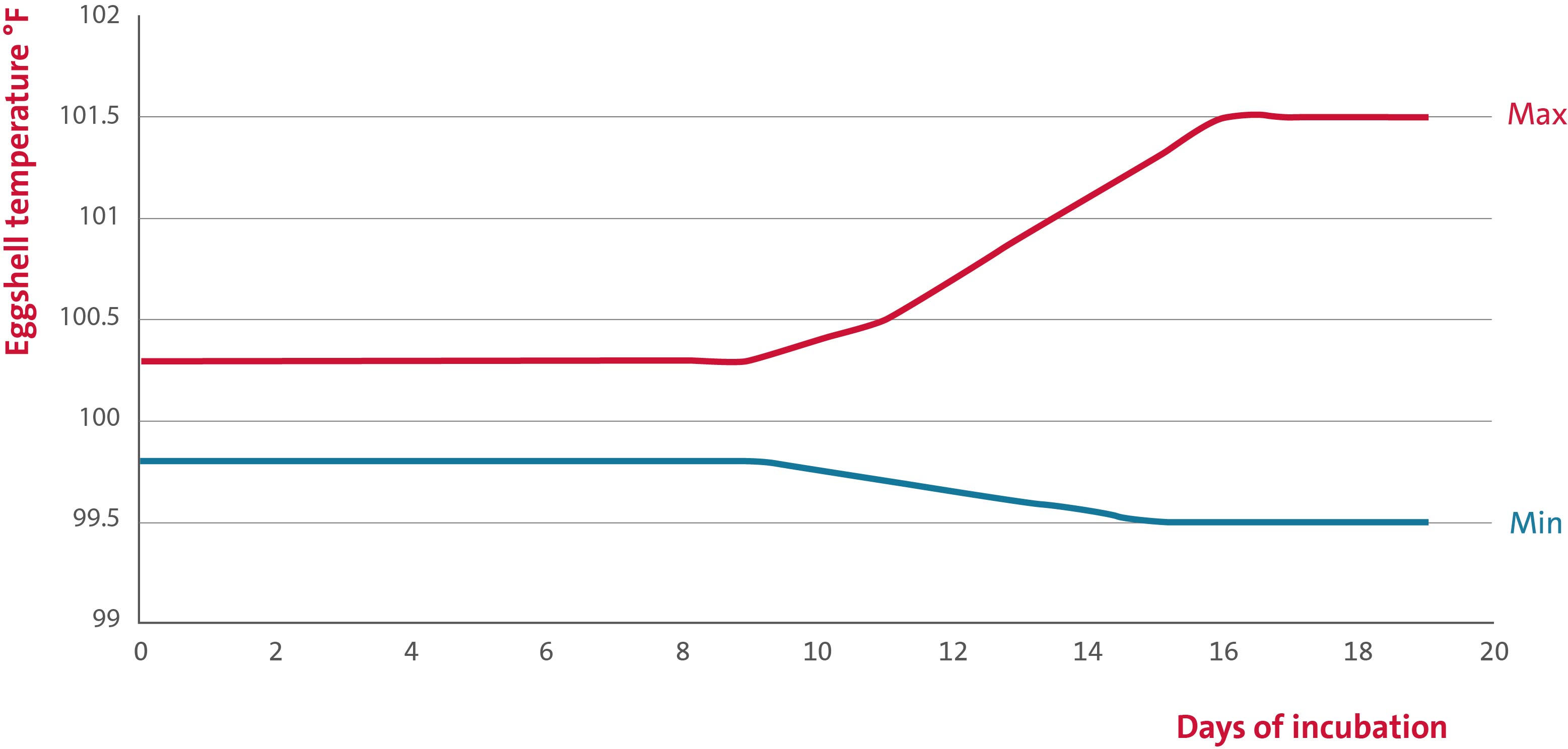 Figure 1: Acceptable boundaries of minimum and maximum eggshell temperatures.